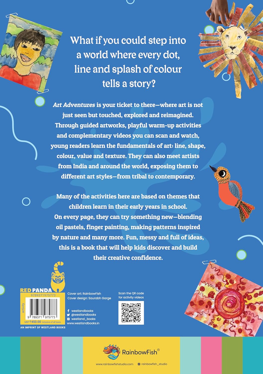 Art Adventure is your ticket to there-where art is not just seen but touched, explored and reimagined. Through guided artworks, playful warm-up activities and complementary videos you can scan and watch, young readers learn the fundamentals of art: line, shape, colour, value and texture. They can also meet artists from India and around the world, exposing them to different art styles- from tribal to contemporary.