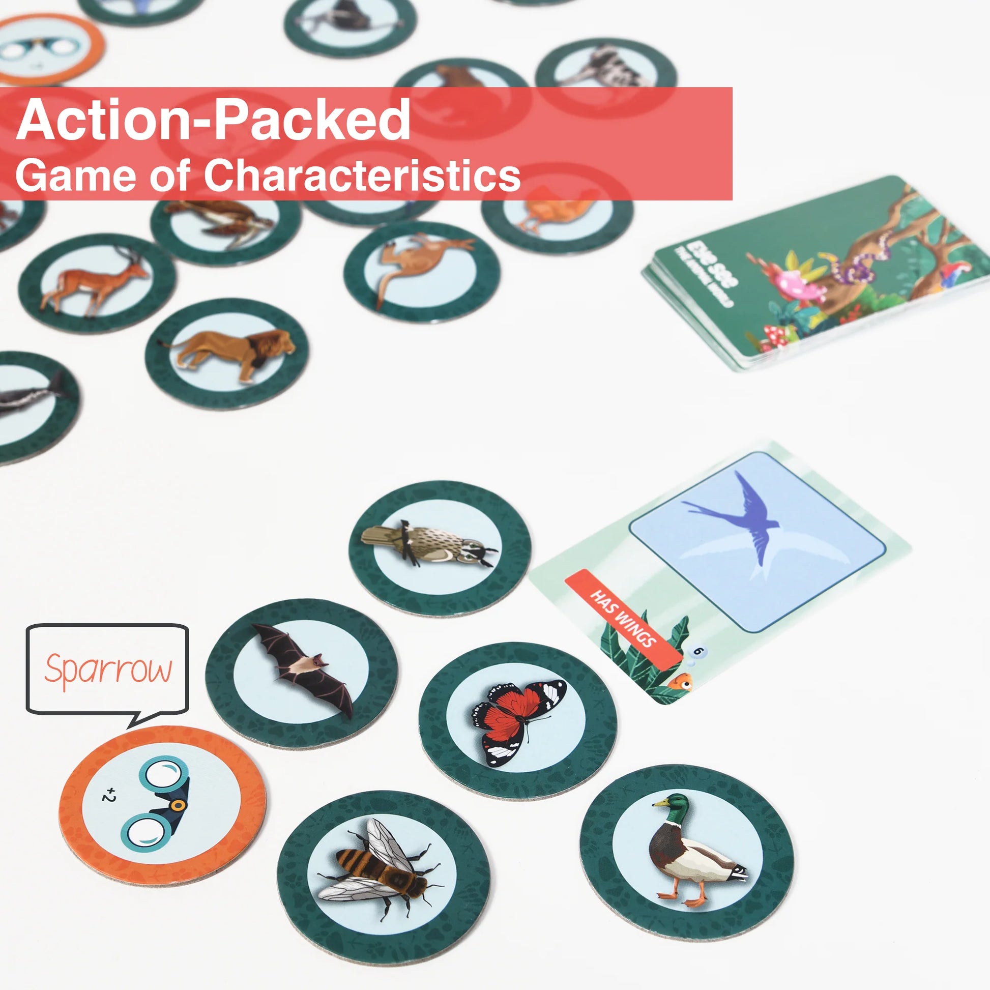 Do ‘Eye See’ the animals that lay eggs or the animals that have stripes? It‘s a game of 20 clever characteristics for preschoolers and families! Be the fastest to SEE and grab animals that match the characteristic. A super fun game that’s entertaining & educational!