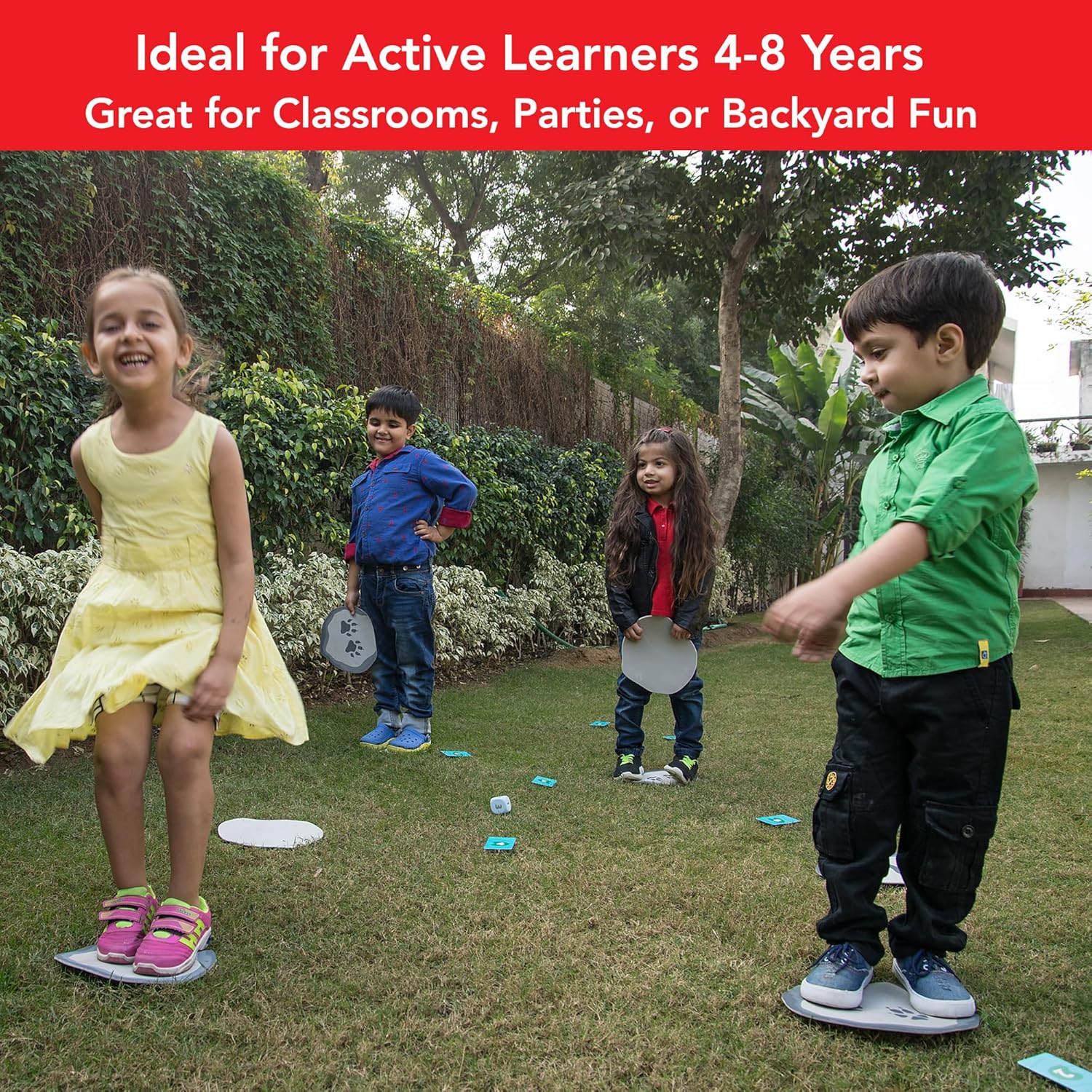 Hop, jump, or skip a step towards learning & fun! This kit with multiple activity ideas will get kids moving while developing cognitive skills. Banish those dreaded words 'I’m bored' with this exciting, action-packed, jumping and movement game.