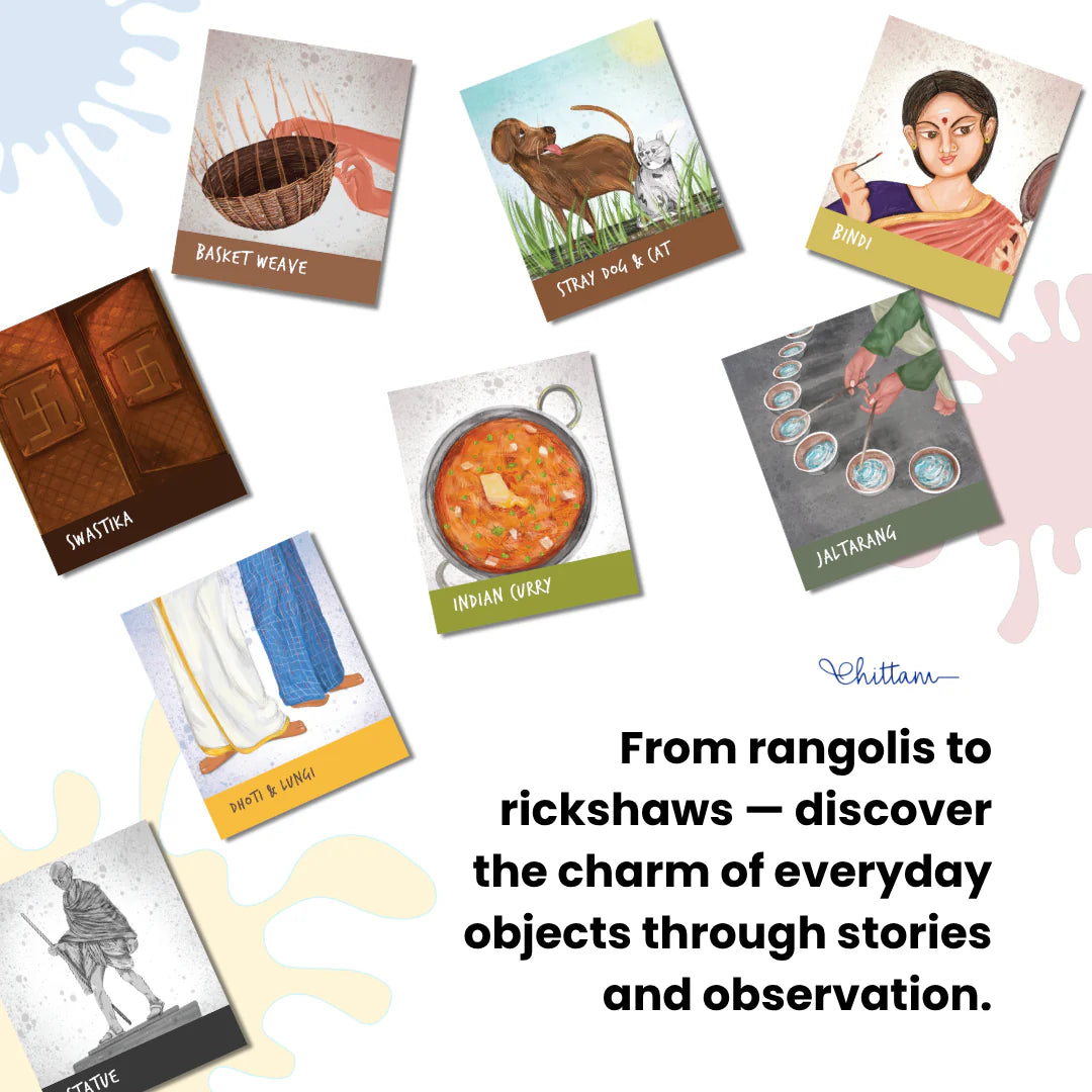 From temple bells to roaring trains, colourful markets to playful street dogs, every card turns what your child sees into a story worth remembering. Perfect for walks, trips, and waiting moments, it makes discovering India as exciting as a treasure hunt.