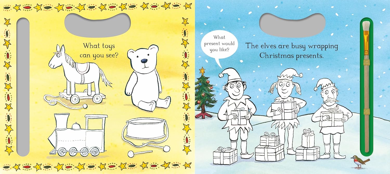 Keep little hands busy - and mess-free - with Christmas Magic Painting! Young children can colour in favourite Christmas characters and objects by adding just water. Join in the festive fun with this brilliant magic water painting activity book, with artwork from Axel Scheffler, bestselling illustrator of The Gruffalo. Each page can be used again and again after drying, and there are things to spot and count on every page too. With a paintbrush to help develop fine motor skills and an easy to grasp carry handle, this activity book, is the perfect gift for little ones out and about or at home. Discover more adventures from Axel Scheffler: Who's Hiding on Safari?, Hide and Seek: On the Farm and In the Jungle.