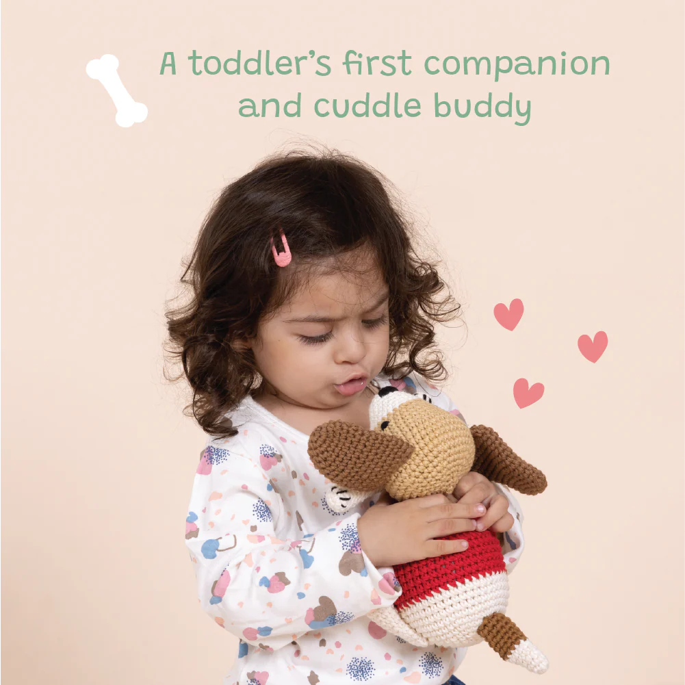 My first pet is designed to be your child’s first companion- a crochet dog that will always hold a special place in their heart.
