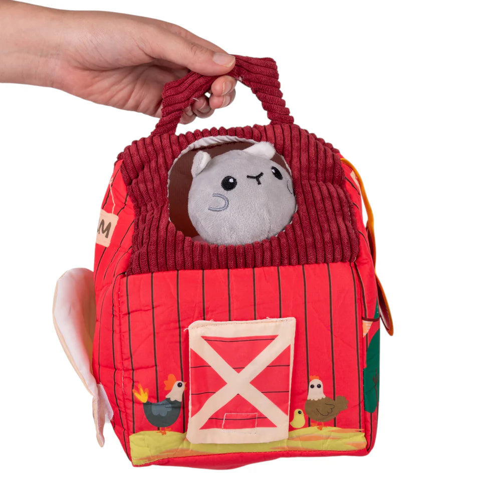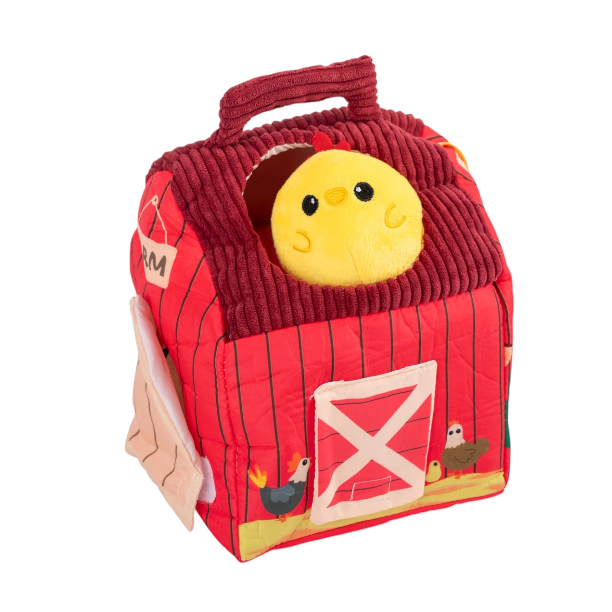 The Star Papaya Farmyard Peek-a-Boo House is a world of soft surprises designed for curious toddlers. This cozy fabric playhouse comes with round, squishy animal friends that can be slotted through the front door or popped down the chimney — encouraging cause-and-effect learning through giggle-filled play.